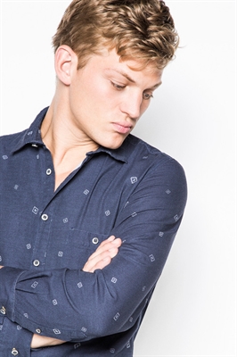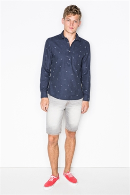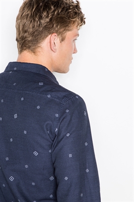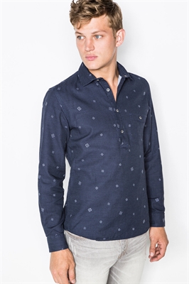 Camisa estampada, con cuello polo y bolsillo en pecho.- Manga larga.- Cierre con botones.