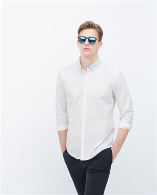 Camisa flamé cuello y coderas contraste ALTURA MODELO: 188 CM. TALLA L