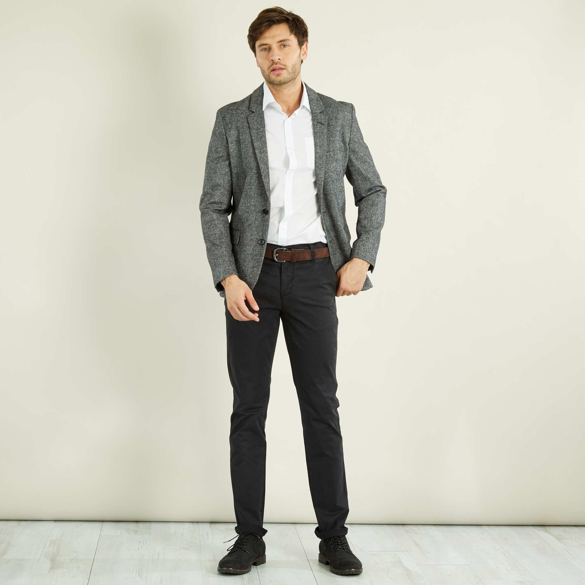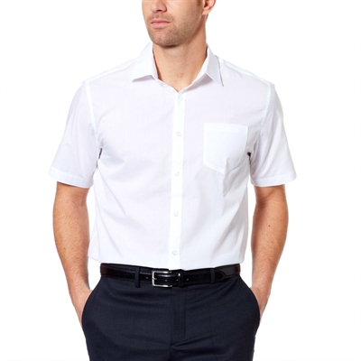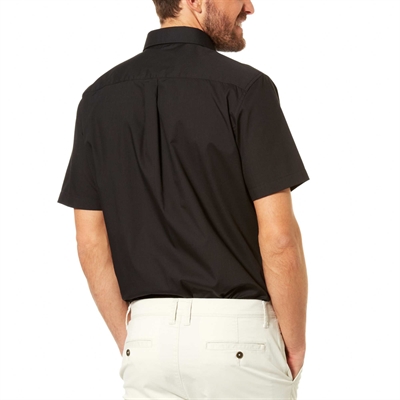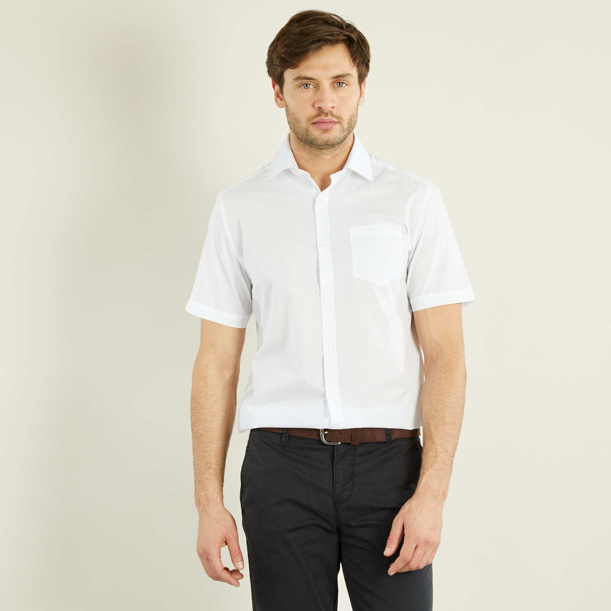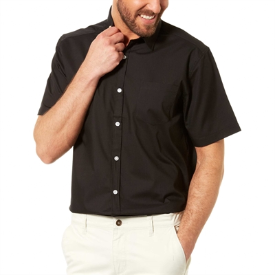 El básico más acertado: camisa lisa de manga corta, con corte recto, cuello sin botones, cierre con botones y 1 bolsillo superpuesto en el pecho.65% poliester,35% algodonLavable a máquina.