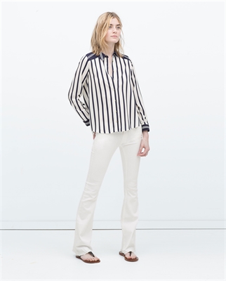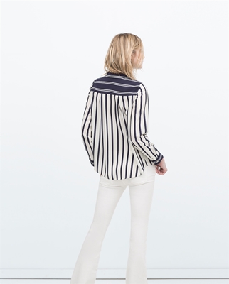 Camisa rayas. Cuello camisero. Manga larga. Cierre botonadura tapeta.ALTURA MODELO: 178 cm