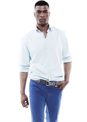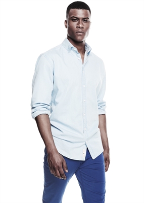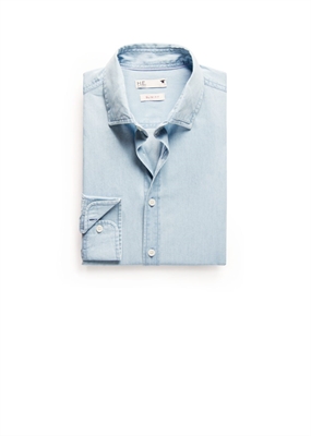 Camisa slim-fit en algodón chambray que pertenece a la línea casual. Cuello clásico, cierre de botones en la parte delantera, manga larga y puño redondeado con cierre de un botón.