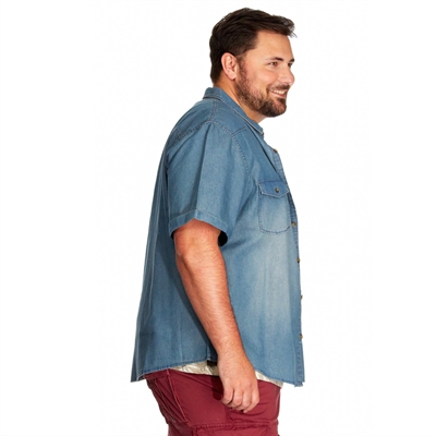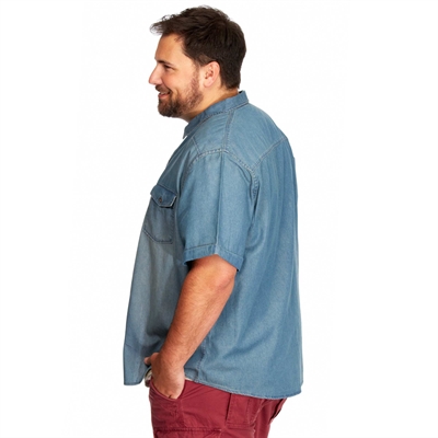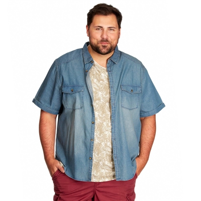 Actual, cómoda y muy ligera... ¡Haz hueco para las prendas vaqueras! - Camisa informal de talla grande - Tejido vaquero de puro algodón - Corte recto - Manga corta con dobladillo a contraste - Cuello sin botones - Cierre abotonado - Canesúes pespunteados en los hombros - Bolsillos de solapa con botón en el pecho - Largo de espalda: 78 cm aproximadamente - En la imagen, el modelo lleva una talla 3XL y mide 1,84 m100% algodonLavable a máquina.