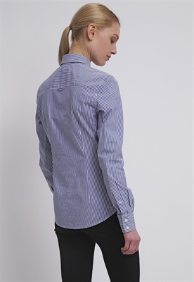 Largo:normalCierre:botónAncho de la espalda:34 cmModelo, altura:179 cm, lleva la talla 36Estampado:de rayasLargo de la prenda:60 cmCuello:camiseroDetalles:costura bajo el pechoLargo de la manga:61 cmLargo de manga:manga largaMaterial exterior:97% algodón, 3% elastanoCuidados:lavar a máquina a 40 °C, no utilizar secadora, programa delicadoNúmero de artículo:GA321E03E-K11