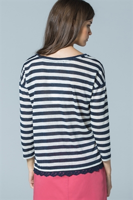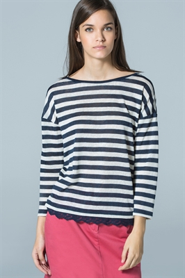 Camiseta de manga larga, cuello redondo, con estampado all over y detalle de lace en el borde inferior.
