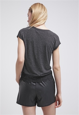 Largo:cortaMaterial/composición:jerseyModelo, altura:180 cm, lleva la talla SCuello/escote:cuello redondoEstampado:jaspeadoLargo de la prenda:53 cmTransparencia:poco transparenteLargo de manga:manga extracortaMaterial exterior:85% poliéster, 15% linoCuidados:no utilizar secadora, lavar a máquina a 30°C, programa delicadoNúmero de artículo:EV421D0EL-Q11