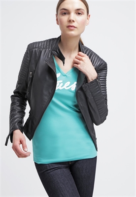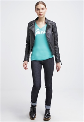 Largo:normalAjuste:ceñidosMaterial/composición:jerseyModelo, altura:177 cm, lleva la talla 36Cuello/escote:en V pronunciadoOcasión:tiempo libreEstampado:unicolorLargo de la prenda:63 cmLargo de manga:cortaMaterial exterior:95% algodón, 5% elastanoCuidados:lavar a máquina a 30°C, programa delicadoNúmero de artículo:GU121D087-M11
