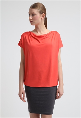 Largo:normalMaterial/composición:jerseyModelo, altura:175 cm, lleva la talla 36Cuello/escote:drapeadoEstampado:unicolorLargo de la prenda:62 cmLargo de manga:cortaMaterial exterior:96% viscosa, 4% elastanoCuidados:no utilizar secadora, lavar a máquina a 30°C, programa delicadoNúmero de artículo:M5821D069-G11