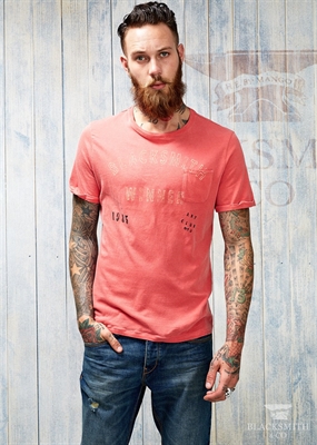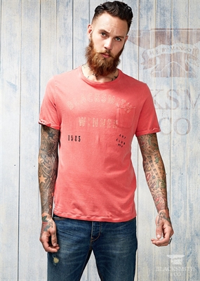 Camiseta de algodón con texto estampado en la parte delantera que pertenece a la colección Blacksmith. Cuello redondo, bolsillo de parche en el pecho y manga corta con vuelta.