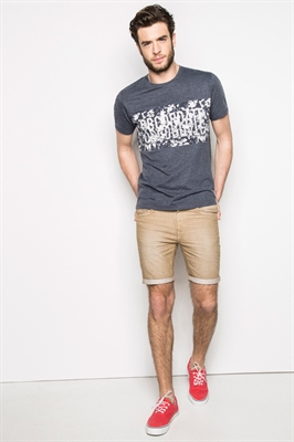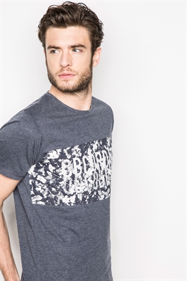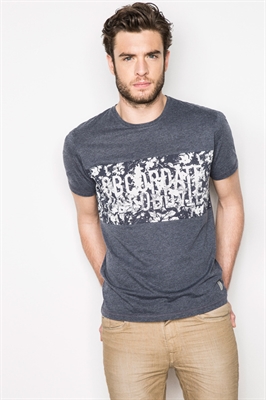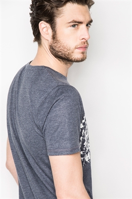 Camiseta con estampado floral al frente y texto.- Manga corta.- Cuello redondo.