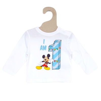 Celebra su primer cumpleaños regalándole esta camiseta de manga larga de 'mickey' - Cuello redondo con broches de presión en el hombro - Estampado delantero de fantasía - Manga larga - 100 % algodón100% algodonLavable a máquina