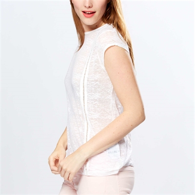 Un top de última tendencia. - Camiseta confeccionada en punto devoré - Cuello redondo - Canesúes bordados - Manga corta - Largo de espalda: 70 cm aproximadamente - Nuestra modelo lleva una talla M y mide 1,89 m66% poliester,34% algodonLavable a máquina.
