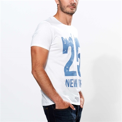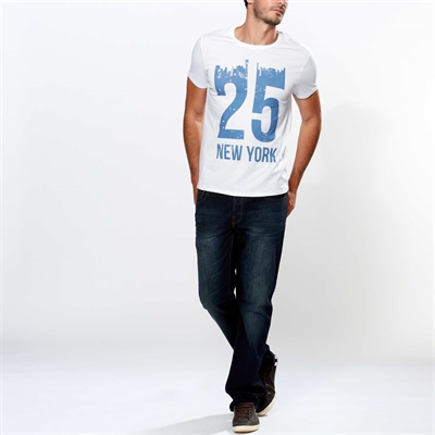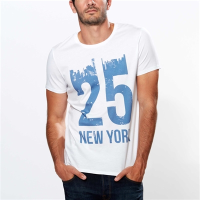 ¡Lánzate a conquistar la jungla urbana! - camiseta de punto fino de algodón puro - Corte recto/regular fit - Cuello redondo - Manga corta - Estampado '25 New York' sobre fondo de ciudad - Largo de espalda: 73 cm aproximadamente -100% algodonSe puede lavar a máquina.