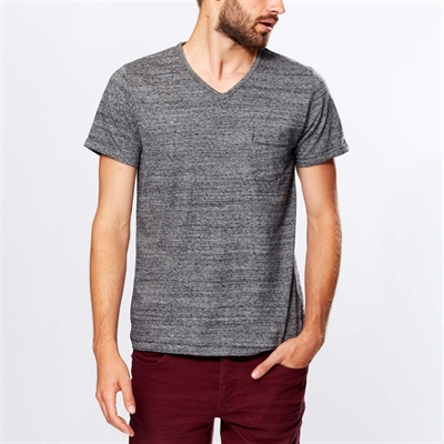 Esta camiseta con cuello de pico está confeccionada en un bonito punto flameado. - camiseta de punto- Punto flameado - Corte recto/regular fit - Cuello de pico - Manga corta con vuelta - Bolsillo en el pecho - Largo de espalda: 72 cm aproximadamente - Nuestro modelo lleva una talla L y mide 1,89 metros57% algodon,43% poliesterSe puede lavar a máquina.