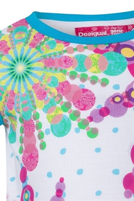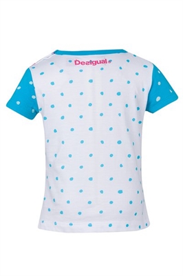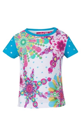 La vida está hecha de color, también para las más peques. Esta camiseta para bebé niña es azul con un estampado a todo color. Es 100% de algodón orgánico y tiene botones en el hombro para que sea más fácil de poner.
