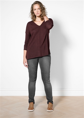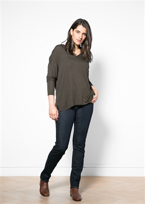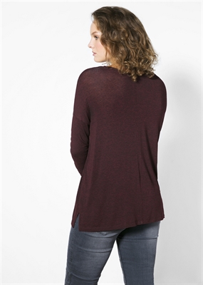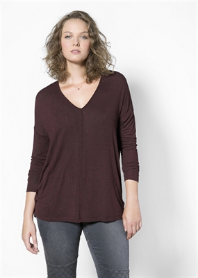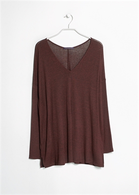 Camiseta fluida con escote pico, manga larga con costura del hombro caída y aberturas laterales en el bajo.
