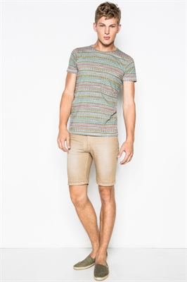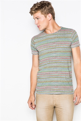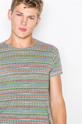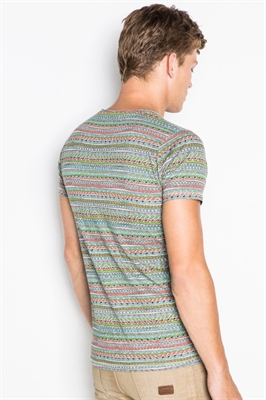 Camiseta con estampado étnico de colores.- Manga corta.- Cuello a la caja.