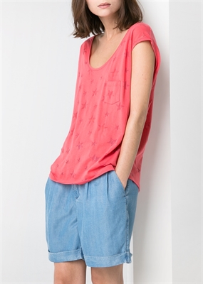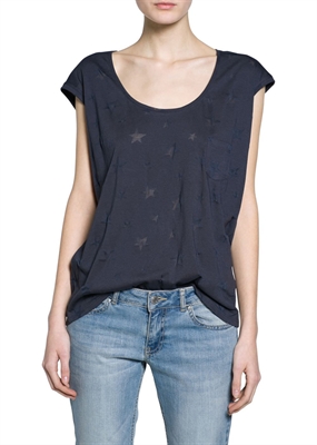 Camiseta sin mangas con estampado de estrellas en una mezcla de algodón. Escote redondo, bolsillo de parche en el pecho y bajo redondeado.