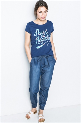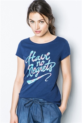 Camiseta lisa con mensaje mensaje estampado de flores "Have no regrets" (sin remordimientos).- Manga corta.- Escote redondeado.