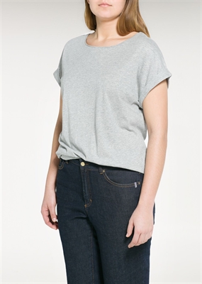 Camiseta jaspeada de algodón. Cuello redondo y manga corta con vuelta.
