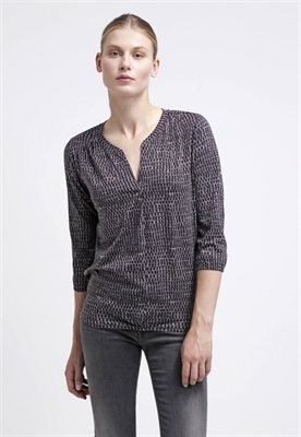 Largo:normalAjuste:normalMaterial/composición:jerseyModelo, altura:177 cm, lleva la talla SCuello/escote:en V pronunciadoOcasión:tiempo libreEstampado:estampadoLargo de la prenda:60 cmLargo de la manga:44 cmLargo de manga:3/4Material exterior:50% algodón, 50% fibra de modalCuidados:no utilizar secadora, lavar a máquina a 30°C, programa delicadoNúmero de artículo:MA321D07K-Q11