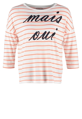Largo:normalAjuste:anchoMaterial/composición:jerseyModelo, altura:179 cm, lleva la talla SCuello/escote:cuello redondoOcasión:tiempo libreEstampado:de rayasLargo de la prenda:57 cmLargo de la manga:44 cmLargo de manga:3/4Material exterior:50% algodón, 50% fibra de modalCuidados:no utilizar secadora, programa delicadoNúmero de artículo:EV421D0D6-G11