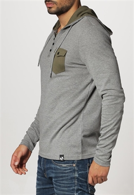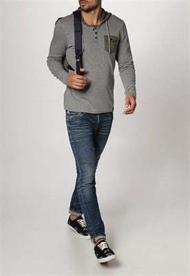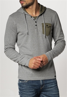 Largo:normalMaterial/composición:jerseyModelo, altura:187 cm, lleva la talla MCuello/escote:henleyOcasión:tiempo libreEstampado:jaspeadoLargo de la prenda:70 cmCuello:capuchaLargo de la manga:67 cmLargo de manga:manga largaMaterial exterior:60% algodón, 40% poliésterCuidados:no utilizar secadora, lavar a máquina a 30°C, programa delicadoNúmero de artículo:YO122D05I-C11