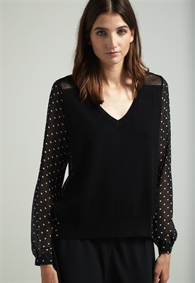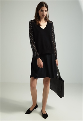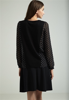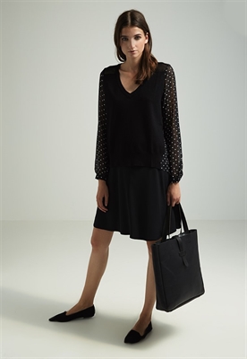 Largo:normalAjuste:anchoModelo, altura:183 cmCuello/escote:de picoEstampado:de lunaresLargo de la prenda:62 cmLargo de la manga:63 cmLargo de manga:manga largaMaterial exterior:77% viscosa, 23% poliamidaCuidados:lavar a máquina a 30°C, programa delicadoNúmero de artículo:M5921I090-Q11