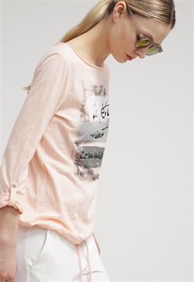 Largo:normalAjuste:normalMaterial/composición:jerseyModelo, altura:177 cm, lleva la talla SCuello/escote:cuello redondoOcasión:tiempo libreEstampado:estampadoLargo de la prenda:60 cmLargo de la manga:64 cmLargo de manga:manga extralargaMaterial exterior:100% algodónCuidados:no utilizar secadora, lavar a máquina a 30°C, programa delicadoNúmero de artículo:QS121D0BD-J11