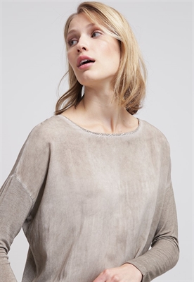 Largo:normalAjuste:anchoModelo, altura:178 cm, lleva la talla SCuello/escote:cuello redondoOcasión:tiempo libreEstampado:unicolorLargo de la prenda:63 cmTransparencia:poco transparenteLargo de la manga:65 cmLargo de manga:manga largaMaterial exterior:95% viscosa, 5% elastanoMaterial parte anterior:100% viscosaCuidados:no utilizar secadora, lavar a máquina a 30°C, programa delicadoNúmero de artículo:TO221D07S-B11