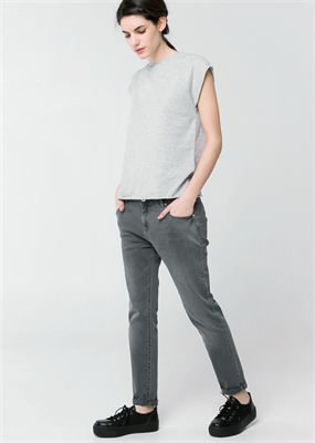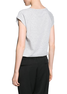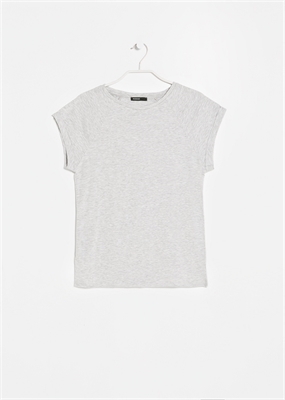 Camiseta de algodón con cuello redondo. Manga corta raglán con vuelta y bajo con costuras abiertas.
