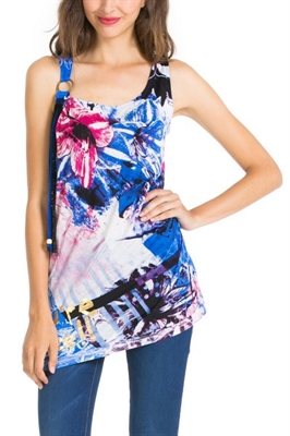 La asimetría está en nuestro ADN. Este top de tirantes tiene el escote y el bajo asimétricos, para un look desenfadado. El tirante izquierdo tiene un nudo que le da un toque original y veraniego. ¡Sé diferente!