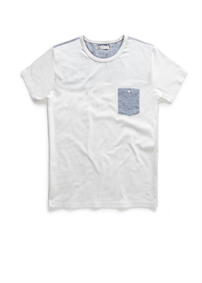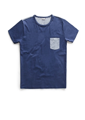 Camiseta en algodón con paneles en contraste que pertenece a la línea casual. Cuello redondo, bolsillo de parche en el pecho y manga corta.