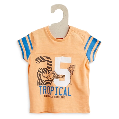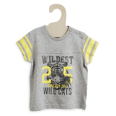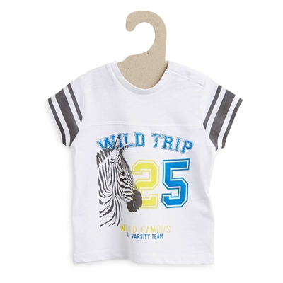 Los animales de la selva invaden esta camiseta. - Camiseta de cuello redondo de canalé - Manga corta con bandas a contraste - Estampado delantero - Canesú delantero pespunteado100% algodonLavable a máquina.