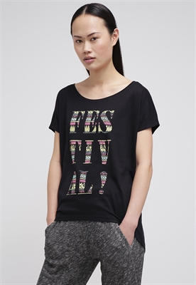 Largo:normalMaterial/composición:jerseyModelo, altura:175 cm, lleva la talla SCuello/escote:cuello redondoOcasión:tiempo libreEstampado:estampadoLargo de la prenda:69 cmLargo de manga:cortaMaterial exterior:50% algodón, 50% fibra de modalCuidados:no utilizar secadora, lavar a máquina a 30°C, programa delicadoNúmero de artículo:EV421D0DZ-Q11