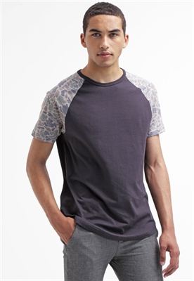 Largo:normalAjuste:normalMaterial/composición:jerseyModelo, altura:186 cm, lleva la talla MCuello/escote:cuello redondoOcasión:tiempo libreEstampado:camuflajeLargo de la prenda:73 cmLargo de manga:cortaMaterial exterior:100% algodónMaterial mangas:56% poliéster, 44% algodónCuidados:lavar a máquina a 40 °C, no utilizar secadora, programa delicadoNúmero de artículo:TP822S050-Q11