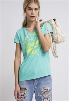 Largo:normalMaterial/composición:jerseyModelo, altura:177 cm, lleva la talla SCuello/escote:de picoEstampado:estampadoLargo de la prenda:58 cmLargo de manga:manga extracortaMaterial exterior:100% algodónCuidados:no utilizar secadora, lavar a máquina a 30°CNúmero de artículo:TW421D02Q-M11