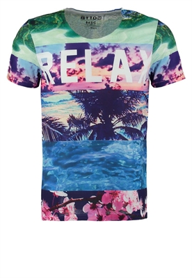Largo:normalMaterial/composición:jerseyModelo, altura:190 cm, lleva la talla MCuello/escote:cuello redondoEstampado:estampadoLargo de la prenda:67 cmLargo de manga:cortaMaterial exterior:100% poliésterCuidados:lavar a máquina a 40 °C, no utilizar secadoraNúmero de artículo:TO722O04C-A11
