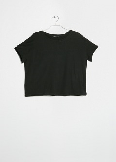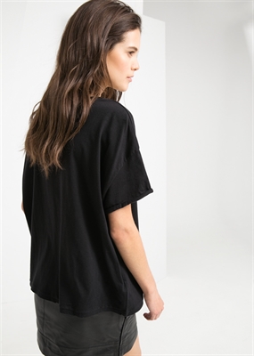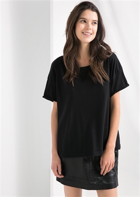 Camiseta de algodón con rotos decorativos. Cuello redondo y manga corta con vuelta.