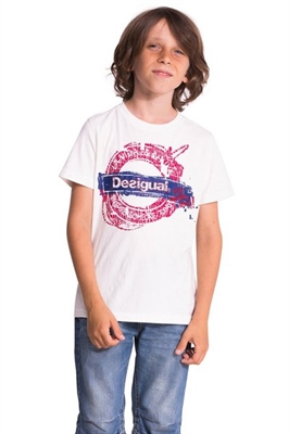 ¡Enséñales que la vida es chula! Esta camiseta blanca de manga corta tiene un estampado clásico de Desigual. Para los niños más tranquilos que quieren transmitir positivismo y buen rollo. Es de algodón, cómoda y fresca.