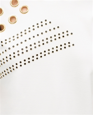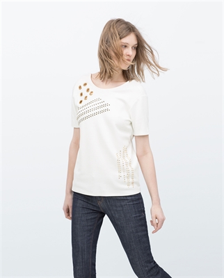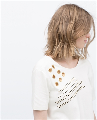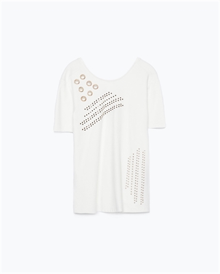 Camiseta blnca. Corterecto. Tachas en delantero. Manga corta.ALTURA MODELO: 178 CM
