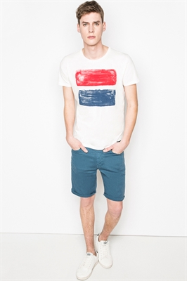 Camiseta manga corta tejido irregular con estampado en el pecho.
