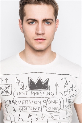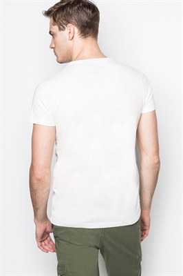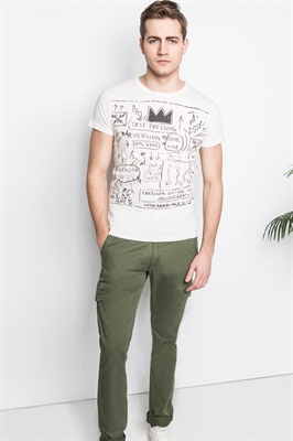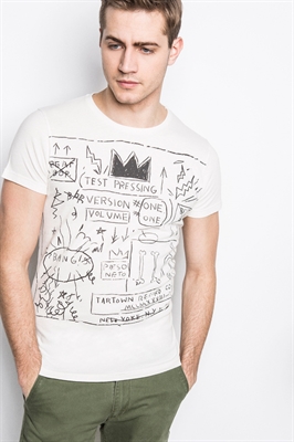 Camiseta manga corta tejido irregular con estampado en el pecho.
