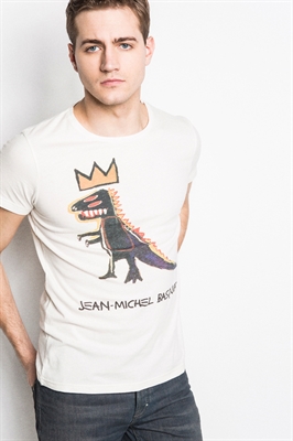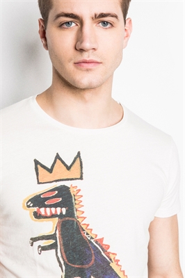 Camiseta manga corta tejido irregular con estampado en el pecho.