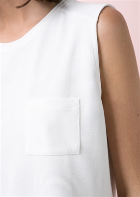 Camiseta sin mangas en tejido con textura de rayas. Cuello redondo, bolsillo de parche en el pecho y cierre de cremallera en la parte posterior.