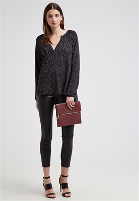 Largo:normalAjuste:normalModelo, altura:181 cm, lleva la talla SCuello/escote:en V pronunciadoEstampado:estampadoLargo de la prenda:71 cmCuello:alzadoLargo de la manga:63 cmLargo de manga:manga largaMaterial exterior:50% algodón, 50% fibra de modalCuidados:no utilizar secadora, lavar a máquina a 30°CNúmero de artículo:ES121E04R-Q11