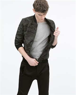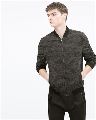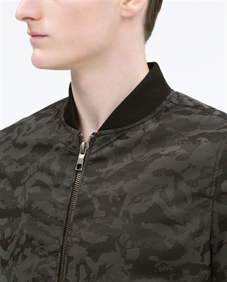 Bomber estampado camuflaje. Goma en cintura y puños. Cierre con cremallera.