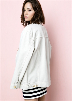 Cazadora denim oversize en color crudo. Cierre de botones en la parte delantera, dos bolsillos de solapa en el pecho, dos bolsillos laterales y manga larga abotonada.