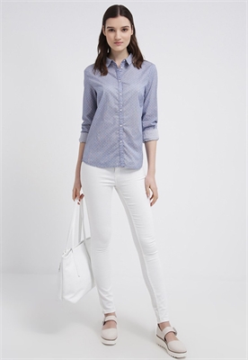 contiene partes no textiles de origen animalLargo:normalCierre:botónAncho de la espalda:34 cmModelo, altura:178 cm, lleva la talla MEstampado:de lunaresLargo de la prenda:63 cmCuello:camiseroDetalles:costura bajo el pechoLargo de la manga:62 cmLargo de manga:manga largaMaterial exterior:100% algodónNúmero de artículo:SO821E02W-K11