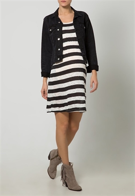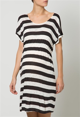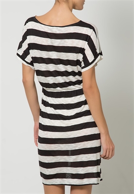 Largo:extralargoAjuste:anchoMaterial/composición:jerseyModelo, altura:178 cm, lleva la talla SCuello/escote:cuello redondoOcasión:tiempo libreEstampado:de rayasLargo de la prenda:74 cmCuello:redondoTransparencia:poco transparenteLargo de manga:cortaMaterial exterior:80% viscosa, 20% linoNúmero de artículo:N1429G013-Q11