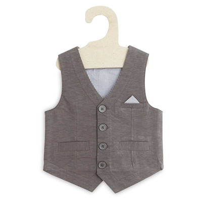 ¡Elegancia para nuestros pequeños! - Chaleco de algodón - Forro de punto de rayas - Cierre delantero con 4 botones - 2 bolsillos delanteros falsos - 1 bolsillo con aplique tipo bolsillo de pañueloENCIMA 100% algodon FORRO 65% poliester,35% algodonSe puede lavar a máquina.